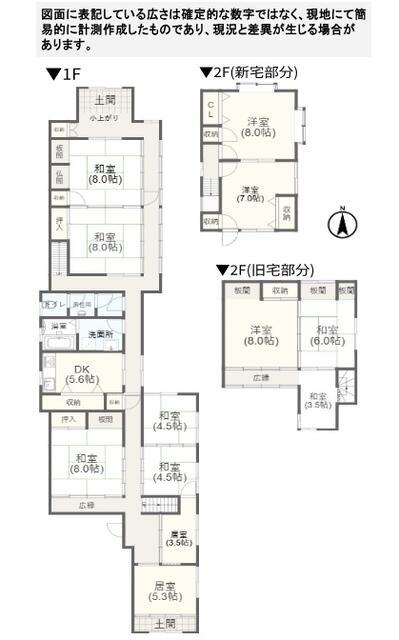 ※現況有姿 ※司法書士売主指定 ※リフォーム推奨 ※境界非明示 ※増築未登記 ※雨漏りあり ※駐車スペース3台 ※火土日は内覧不可 ※築月日不詳(令和7年度課税明細によると昭和42年築、平成5年増築) |