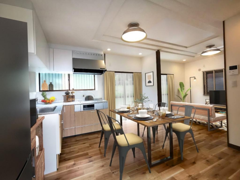 新築セットプランの建物価格は参考価格です。土地代金と建物価格以外に、契約事務手数料や外構工事を含む付帯工事費用が必要です。また、土地の条件によっては、建築できない場合や土地の上物解体費用や造成工事に費用がかかる場合があります。予めご了承ください。
