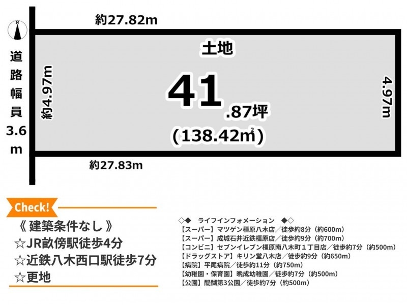 《 建築条件なし 》☆JR畝傍駅徒歩4分☆近鉄八木西口駅徒歩7分☆更地