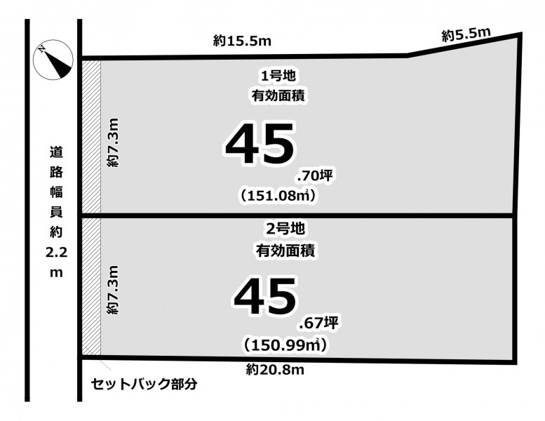 北西側2.2m 間口7.3m |