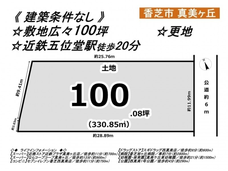 《 建築条件なし 》☆敷地広々100坪☆近鉄五位堂駅徒歩20分☆更地