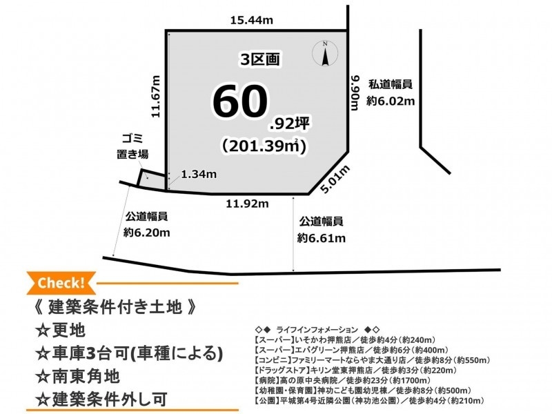 また、土地の条件によっては、建築できない場合や土地の上物解体費用や造成工事に費用がかかる場合があります。予めご了承ください。